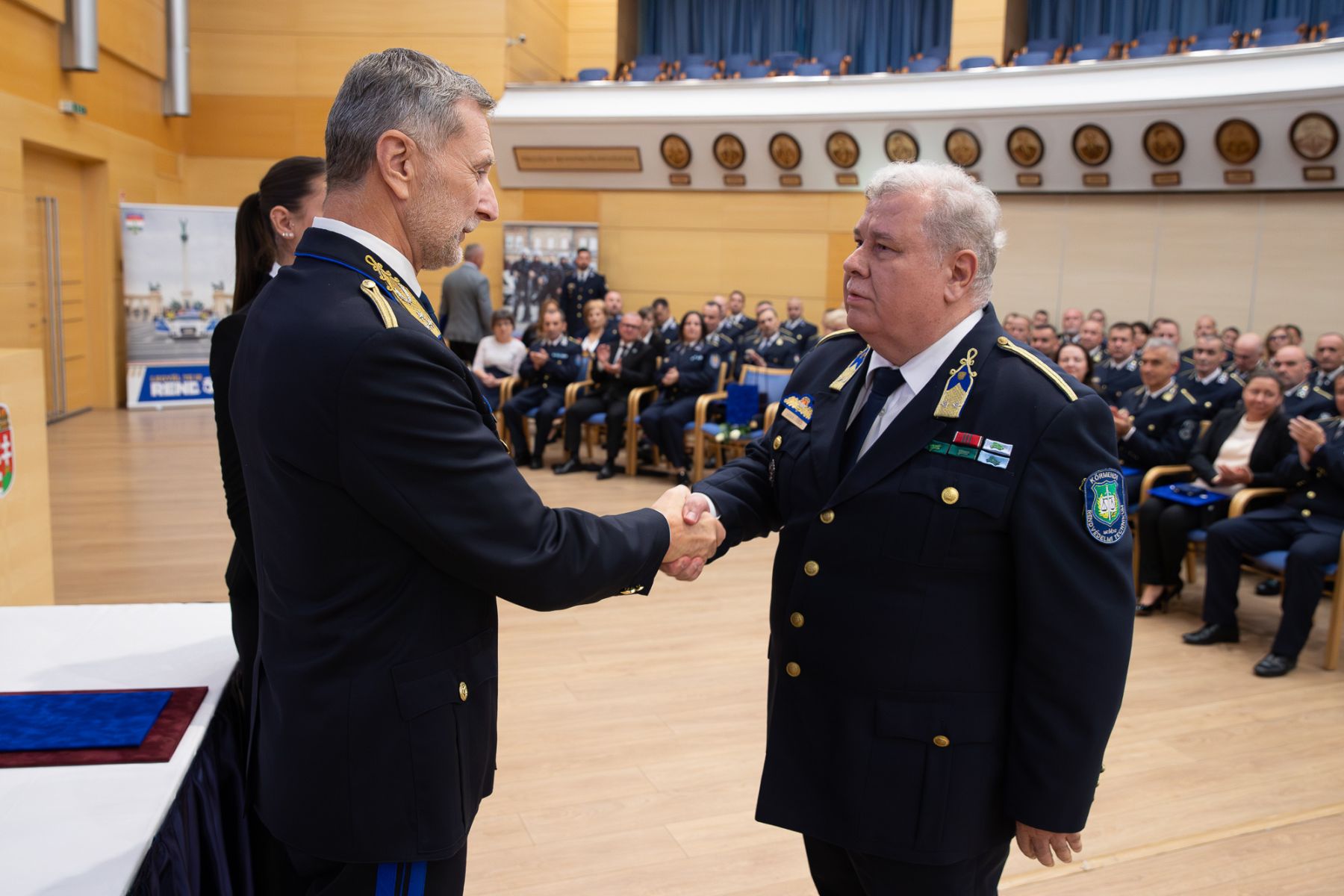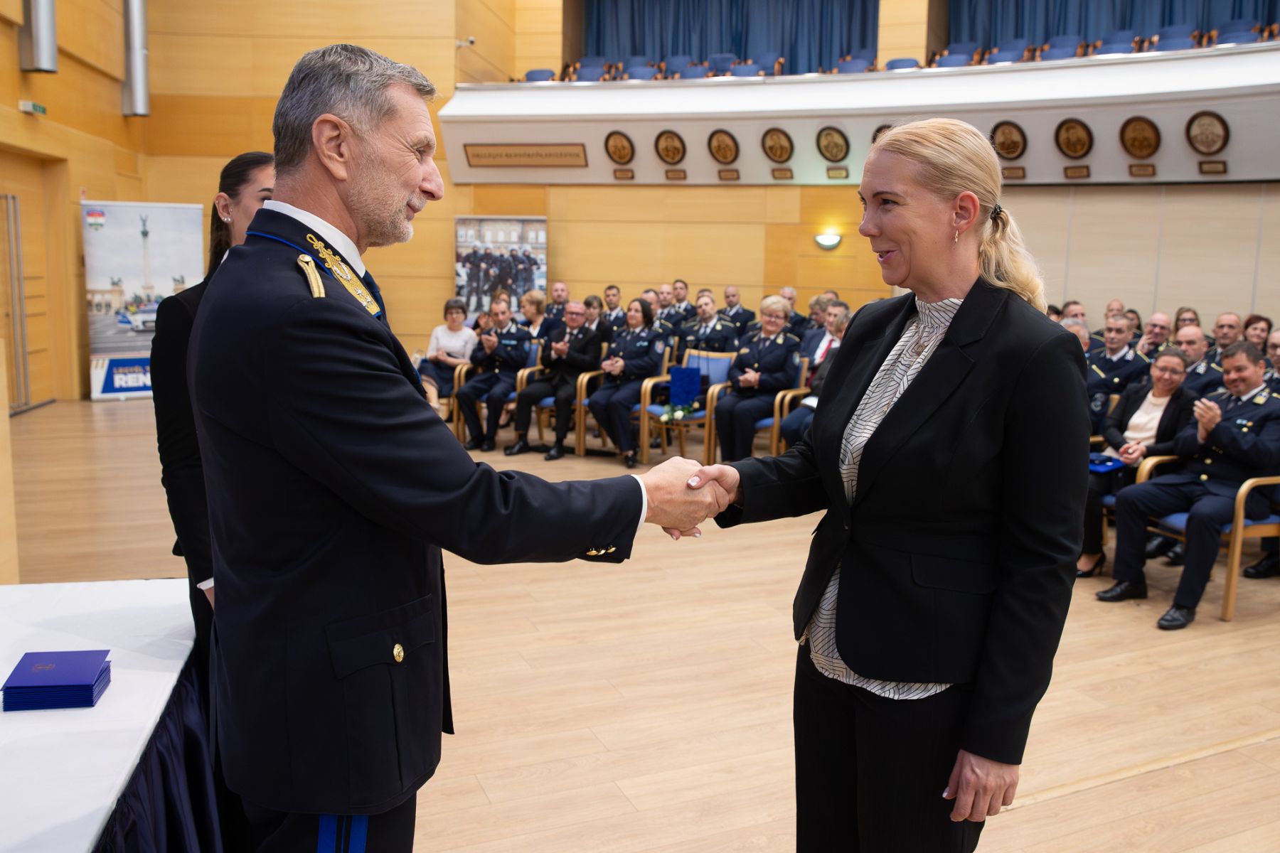 Ezután intézményünk I. évfolyamos tanulóinak és a rendőrjárőr képzés résztvevőinek ünnepi műsora következett. A nemzeti lobogókkal, korabeli ruhákkal, tárgyakkal, fegyverekkel díszített, az emlékezés gyertyáinak fényében világító színpad hívogatón várta az ünnephez méltóan fekete-fehérbe öltözött szereplőket.