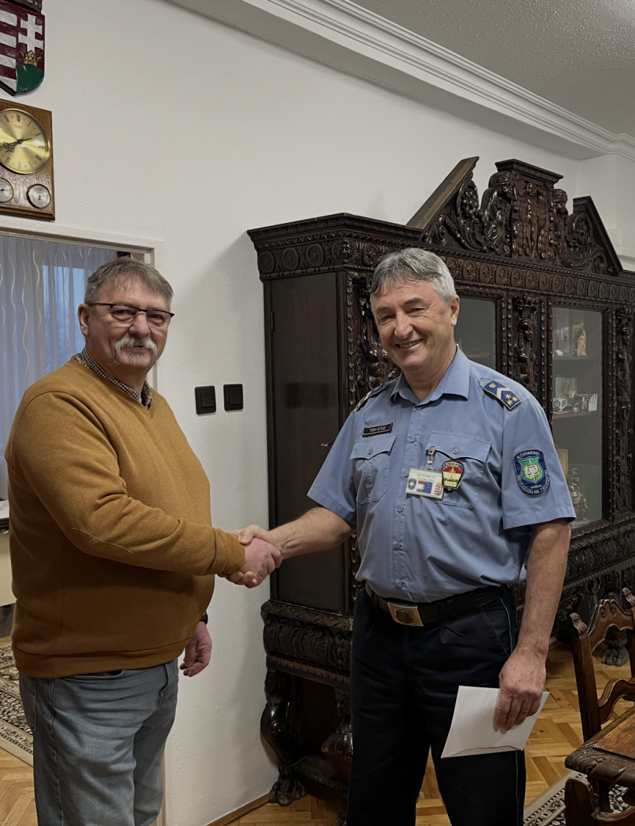 Andor László r. alezredes, rendőrségi főtanácsos Úr a Titkárság vezetőjeként, de az egész iskola bástyájaként szolgált az utolsó percig. A legutolsóig, becsülettel, mert ő annak idején erre esküdött. Alezredes Úr, Laci, 2025. december 31-én, a felső korhatár betöltésével nyugállományba vonul. Mindazt, amit napról napra, hétről hétre, az évek hosszú során „letett az asztalra”, nemcsak mi, kollégák láttuk és ismertük el. Kitüntetései sorában az utolsót – egy Kossuth pisztoly emléktárgyat - ezen a héten vette át Budapesten Dr. Pozsgai Zsolt r. vezérőrnagy Úrtól, az ORFK Személyügyi Főigazgatóság vezetőjétől.